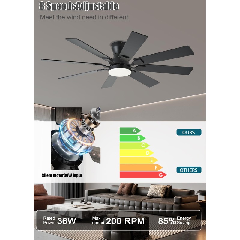 • 【8 - Speed and Reversible】: Our ceiling fan offers 8 speed settings with a maximum air volume of up to 8500 CFM. You can precisely adjust the wind speed according to your specific needs. Its reversible function is truly remarkable! In summer, it brings a refreshing breeze to drive away the heat; in winter, it efficiently circulates warm air to quickly warm up your room. Enjoy comfortable airflow all year round.
