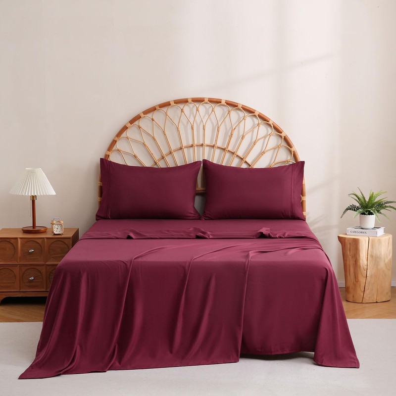 JSD Burgundy Queen Sheet Set with Side Pocket Corner Straps, 4 Piece Soft Microfiber Bed Sheets Extra Deep Pocket
