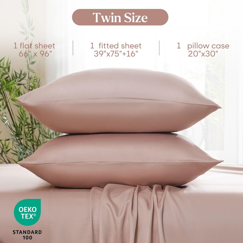 JSD Dusty Pink 100% Viscose Derived from Bamboo Sheet Set Twin, Cooling Sheets for Hot Sleepers, Soft Silky Breathable Bed Sheets Extra Deep Pocket
