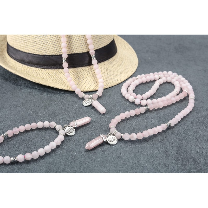 JSDDE 108 Mala Prayer Beads Wrap Bracelet Natural Rose Quartz Crystals Gemstone Lotus Pendant Necklace for Healing Meditation