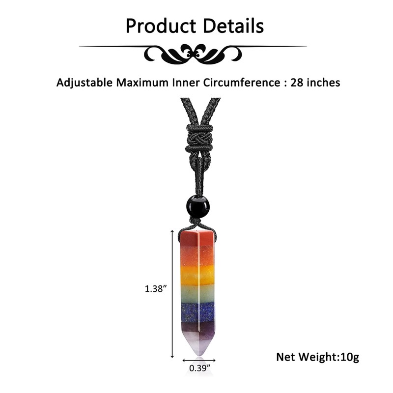 - Dimensions: pendant 35 x 10 mm, crystal column length 50 x 12 mm (style 2), chain length 28 inches (approx. 71 cm)