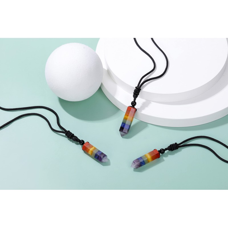 JSDDE 7 Chakra Pendant Necklace Natural Stone Hexagonal Column Cone Dot Braided Jewelry Women Men Gift Lucky Charm Bad Energy Protection Reiki, Stone braided rope, stone