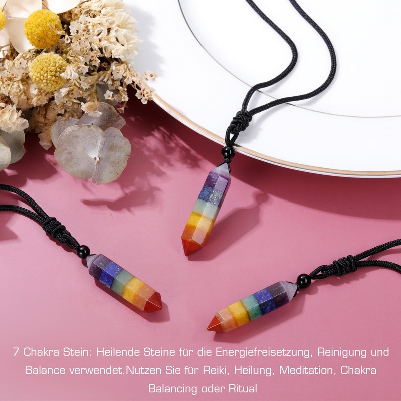 JSDDE Chakra Chain Healing Stones Chain Hexagon Columns Gemstone Pendant Necklace Yoga, Reiki, Healing, Meditation Amulet Chain Lucky Charm Jewellery for Men and Women