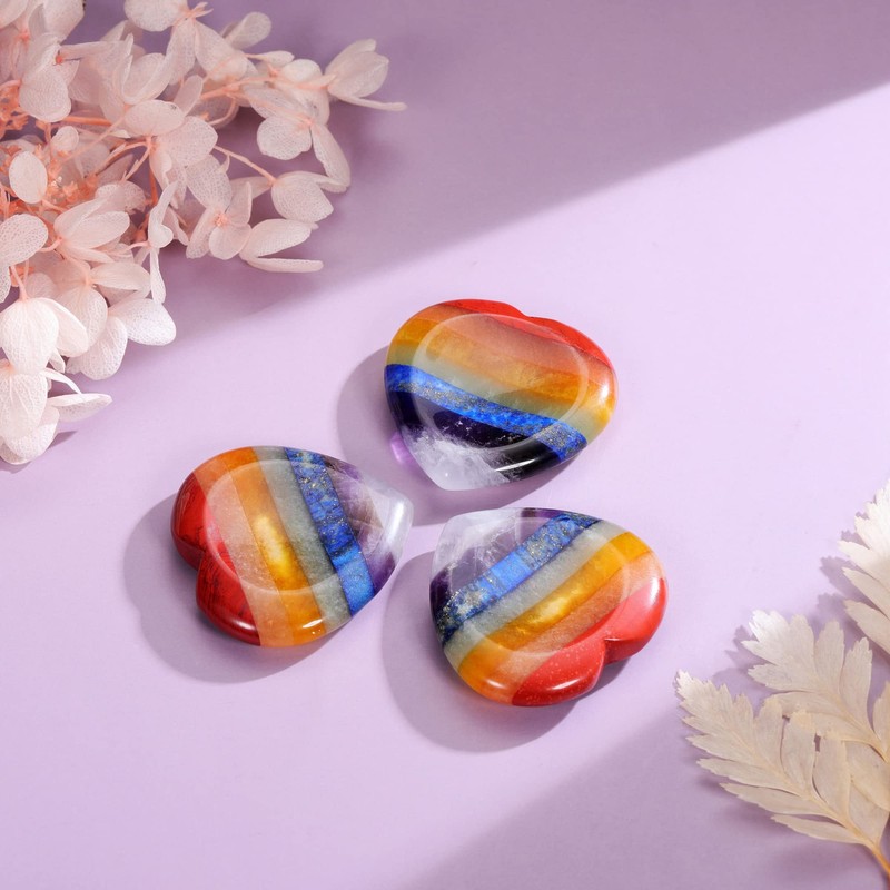 JSDDE Chakra Worry Stones Heart Gemstone Thumb Stone Palm Stone Decompression Pocket Stones for Reiki Healing Energy Therapy Meditations Pack of 2