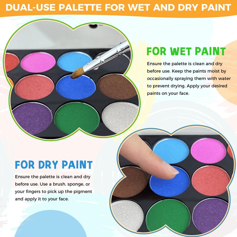 - EASY TO USE AND CLEAN - Simply mix the paints with a few drops of water to get a smooth paste, and then apply evenly with the included brushes. The paint dries quickly and can be easily washed off with soap and water or a damp cloth
