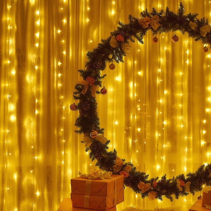 - 3 x 3 m Christmas light curtain, USB-powered fairy lights with super bright 300 LEDs, 3 m main strand, 10 drop strings. Our fairy light curtain is waterproof and insulated. It will not overheat, is safe to the touch after many hours of use and is energy-saving to reduce costs, making it an ideal decoration. These indoor and outdoor decorative fairy lights make a perfect Christmas gift. Suitable for your window, bedroom, yard, gazebo, for weddings, parties, etc.