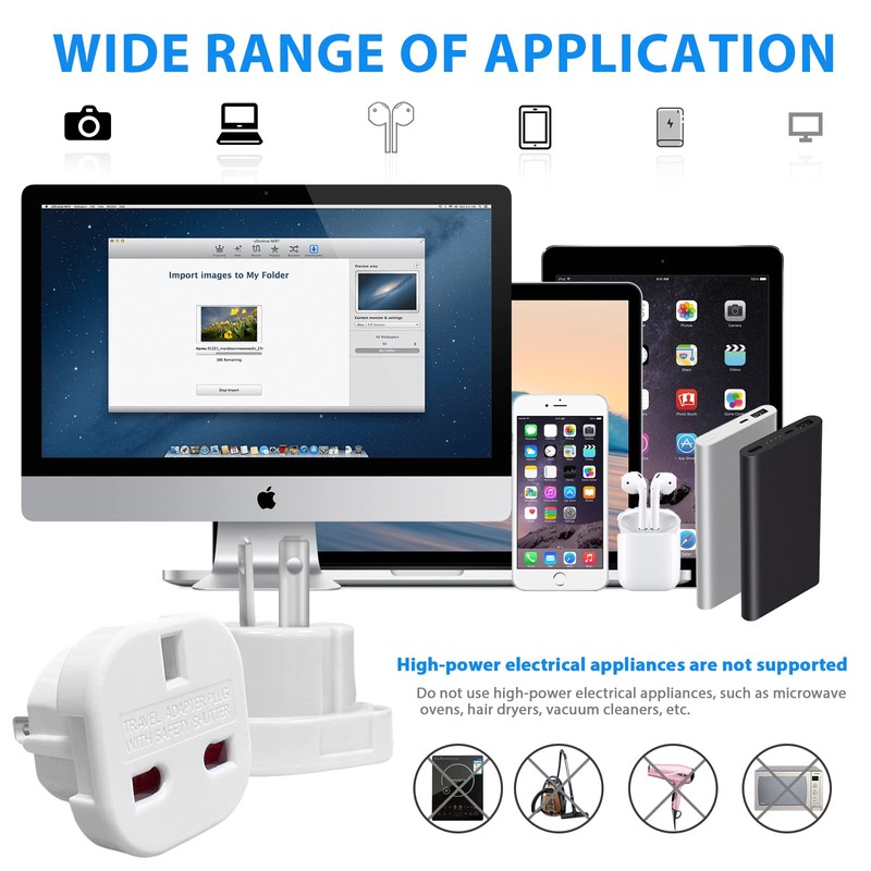 - 2 X Pack of travel plug UK to USA travel adaptors.
