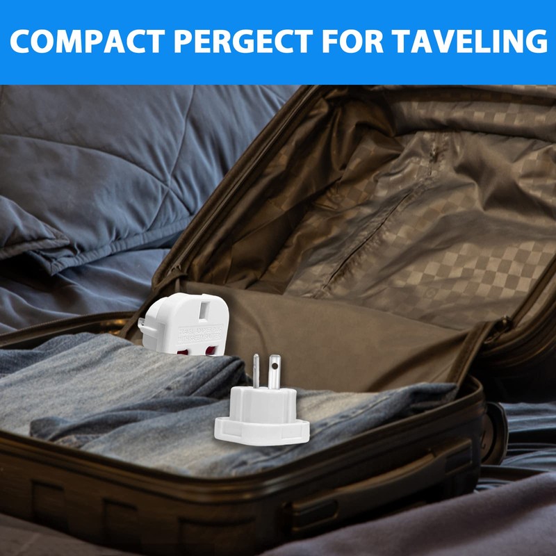 Jsdoin UK to US Plug Adaptor 3 pin to 2 Pin Flat Travel Adapter for USA, Canada, Mexico, Thailand, Refer to Description for country list US (2Pack)