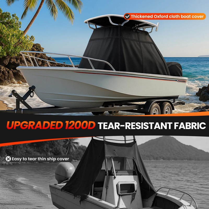 Jseidex upgraded high quality waterproof t-top boat cover uses durable fabric, provides maximum weatherproof protection, easy to install, durable and tear-resistant, 1200D polyester fabric + PU coating + anti-UV coating, waterproof, scratch-resistant, prevent dust and sun damage.