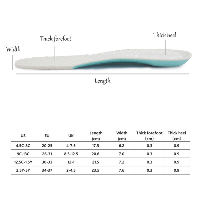 - 2. Neutral arch support: Our insoles are all designed with a contoured heel cup and neutral arch support for growing feet, the kids wear them comfortable when they are running or having sports.