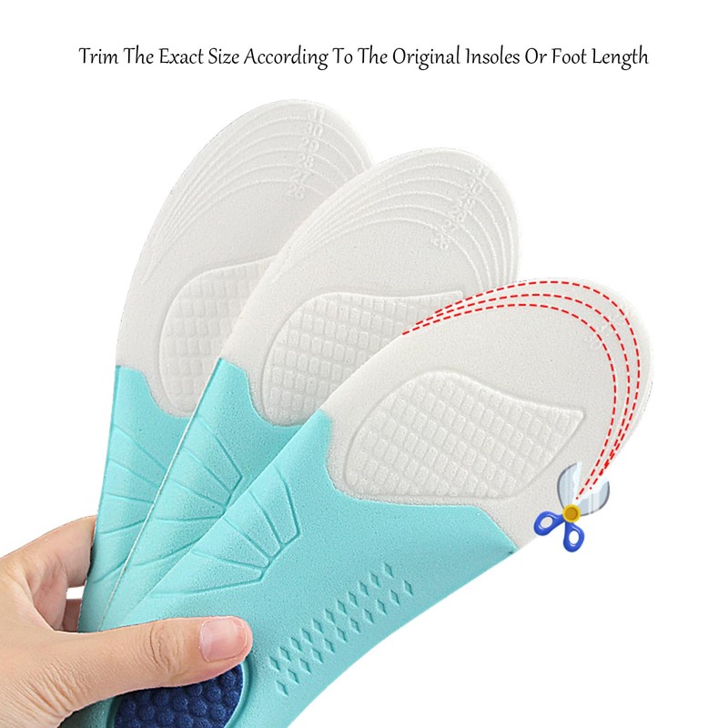 - 4. Easily trimmed: Insole size can be cut according to your shoes, in the back of the insoles have a clear cut line. Full-length insole that can be easily trimmed to fit your shoe size.It is also possible to cut a new insole based on a comparison of the original insole.
