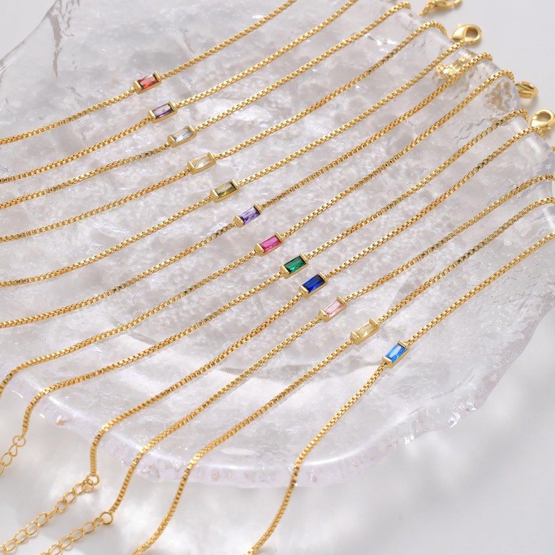 - Stunning Baguette Birthstone Bracelets: Elevate any outfit with our dainty birthstone bracelet adorned with sparkling baguette zircon stones. The perfect accessory to showcase your sophisticated and stylish side.