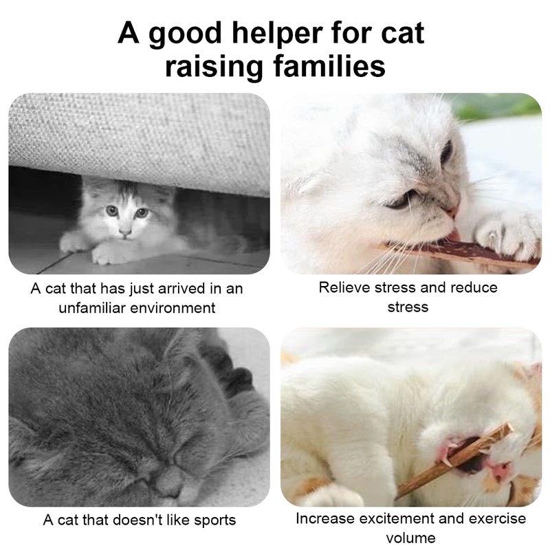Healthy cat: cat chews are great for your kitten, increase appetite, feed or cut directly the outer skin of the natural wooden sticks, the euphoric mood of the cat lasts from 5 to 30 minutes, one stick can be reused many times.