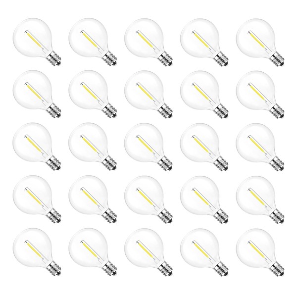 Jslinter G40 LED String Light Replacement Bulbs, 5000K Daylight, 25 Pack, 1W, E12 Base, Shatterproof Glass, 60 Lumens