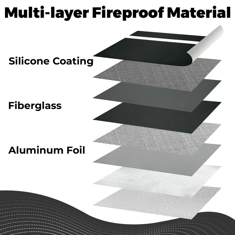 - Waterproof and Fireproof Design: Made of premium silicone-coated fiberglass, thermal insulation cotton and aluminum foil. Sewn with flame-retardant thread and fireproof hemming, equipped with waterproof zipper, Velcro and two metal snaps fastening closure. 360° waterproof design. Withstand temperatures up to 6200℉ within a certain time, allowing you to take it out quickly in an emergency