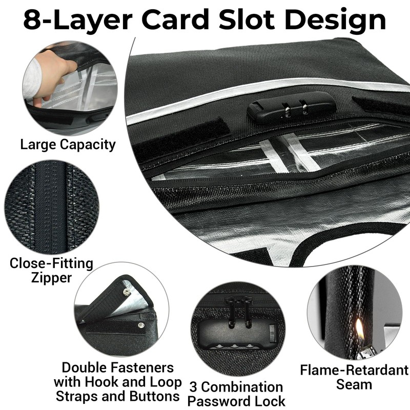 - Safety Protection: The fireproof bag with three combination password lock design ensures that valuables and important documents are not viewed and lost. But it cannot withstand endless exposure to fire or immersed in water for a long time, so please take it out as soon as possible
