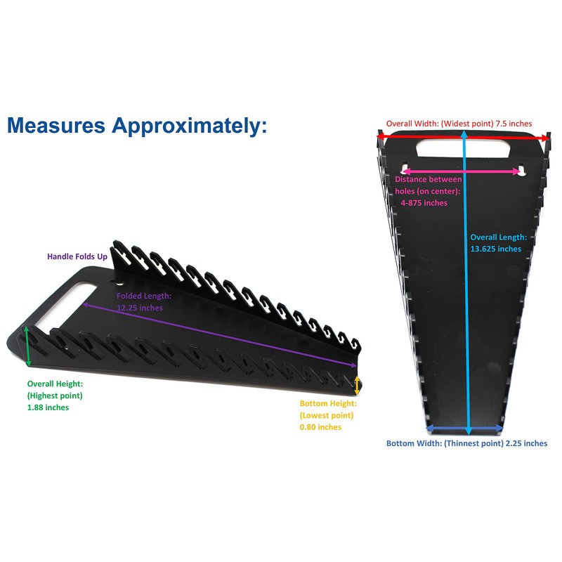 Holds up to 15 wrenches ranging from 1/4 inch to 1-1/8 inch and 6mm to 20mm (wrenches not included)
