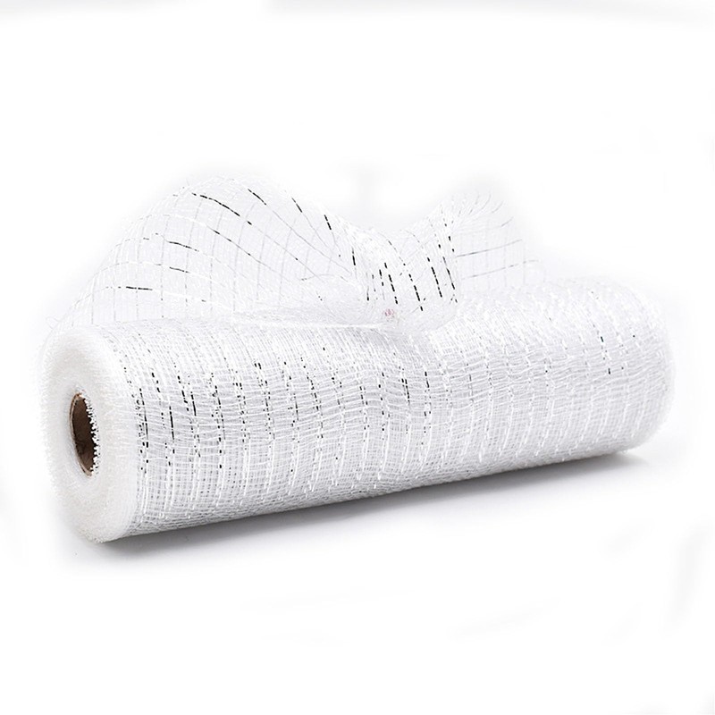 JStnana White Deco Mesh Ribbon 10 inch for Wreath Making Supplies, Metallic Foil Burlap Deco Mesh Fabric Crafts Decorative Mesh for Christmas Tree Thanksgiving Fall Wreath Swag Decor 30 Feets
