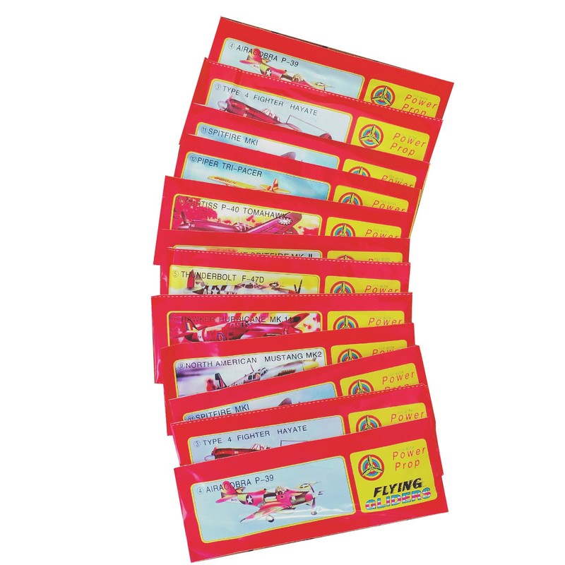 Individually wrapped polystyrene flyers. Unsorted (so there are not all different models, can also be available several times). Size: approx. 23 x 8 cm.