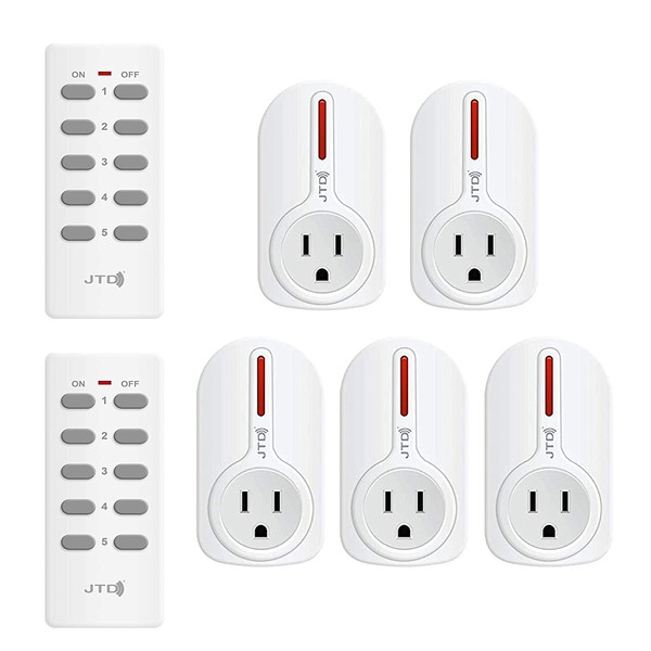 JTD 5X2 Wireless Remote Control Outlet Switch Smart Outlet Plug Energy Saving for Household Appliances, Lamp, Light, Fixture, Electrical Equipment, up to 100ft Long Range, Strong RF Signal (5 Pack)