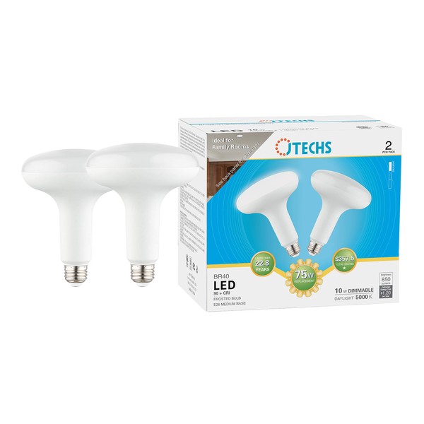 JTECHS Bulbs, LED, 24pk (12-2pks), 75W, Daylight 5000K, Dimmable, BR40, E26 Medium Base, Frosted Bulb
