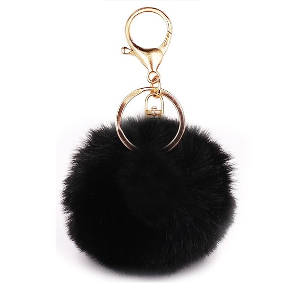 jtkdxqs Pom Pom Keychain Soft Artificial Rabbit Fur Plush Fluffy Ball Key Ring for Women, black