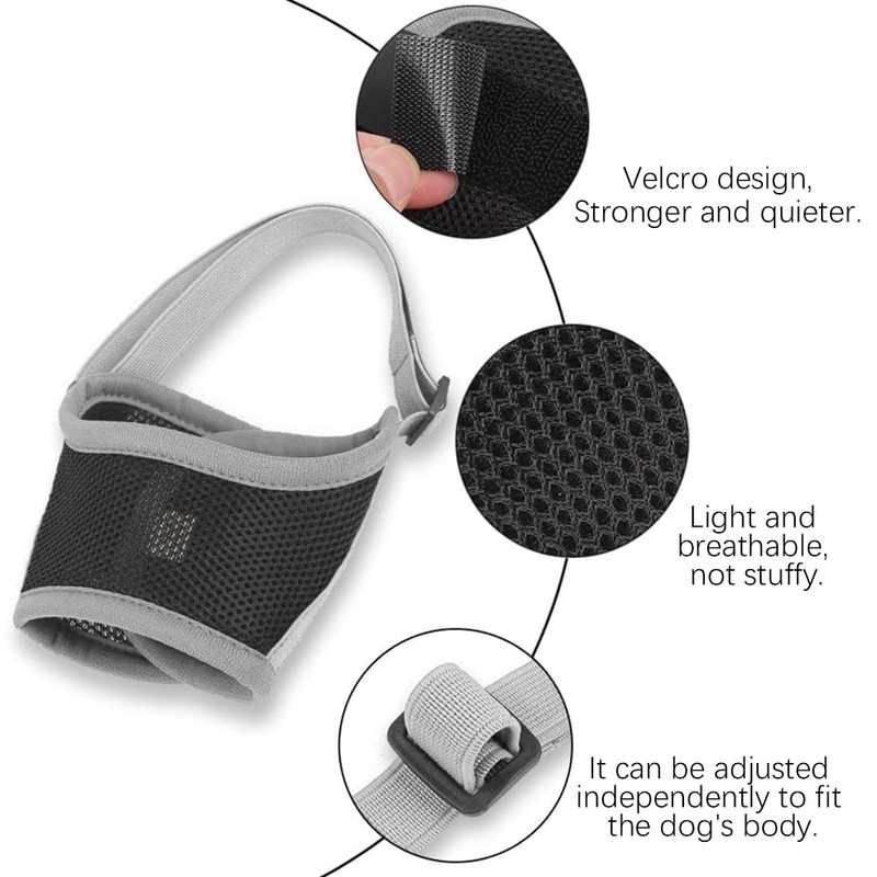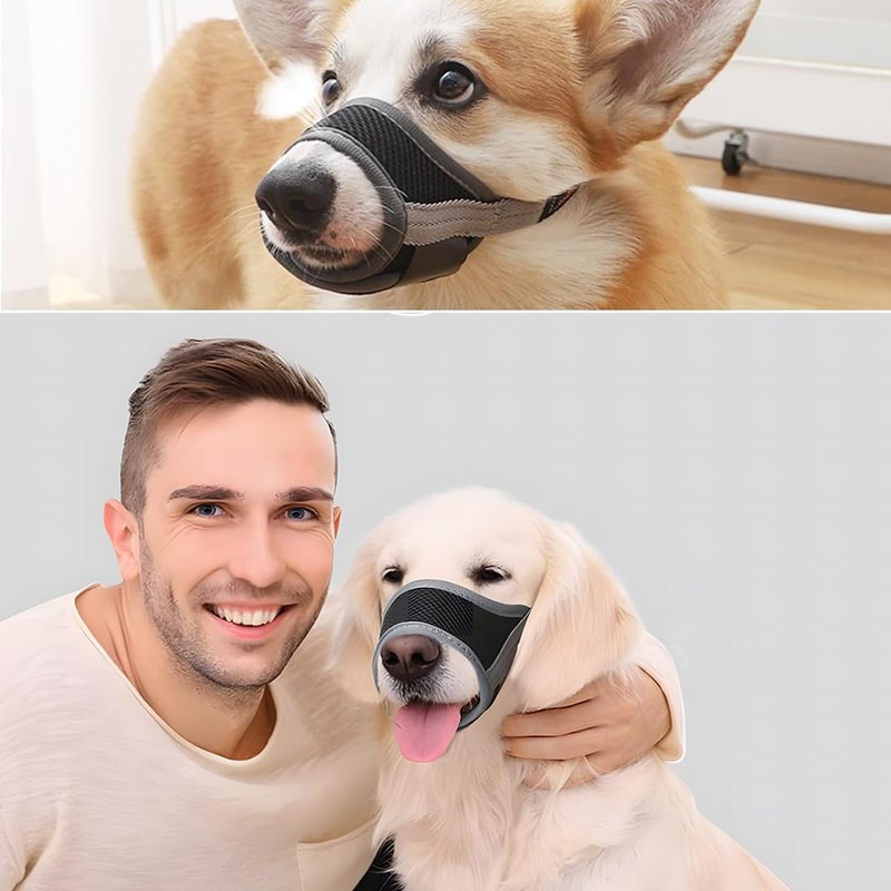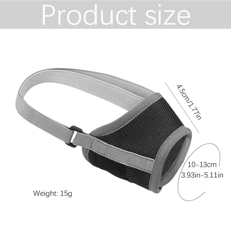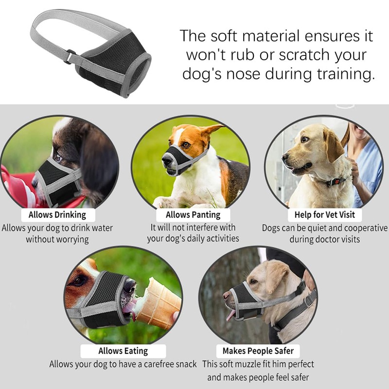 Adjustable and breathable: both the muzzle and the neck strap are adjustable. The muzzle should be tight enough to control its bite, but loose enough for it to pant and yawn freely.