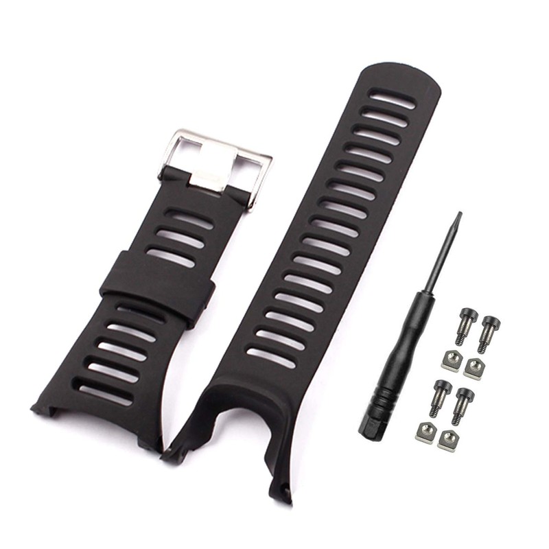 JTMM Suunto Ambit Watch Band Strap, Soft Black Rubber Replacement Watch Band Strap Watch Accessory For Suunto Ambit 1/2/2S/2R/3 Sport/3 Run/3 PEAK, Silver Clasp, Free Tool and Screws Included