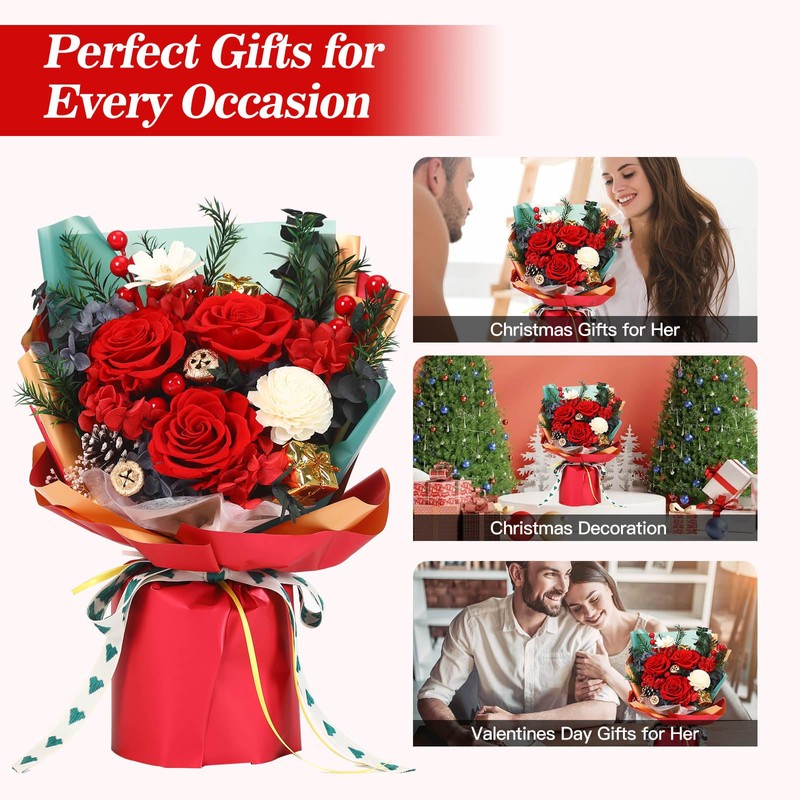 - READY GIFT FOR HER: As a romantic gift for all ages. The perfect rose flowers bouquet gift for mom, wife, girlfriend, daughter, grandma on Christmas Mother's Day, Valentine's Day, Thanksgiving, Anniversary, Birthday or other festive occasion, gift ideas for women
