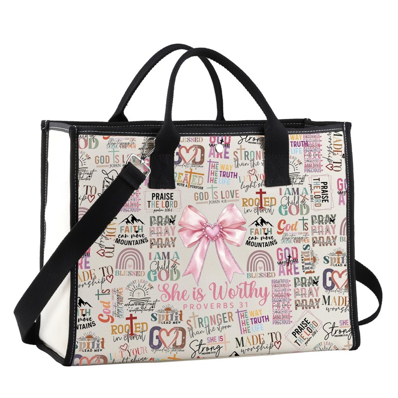JTOUK Religiöses christliches Geschenk, christlicher Bibelvers Geschenk "She Is Worthy Proverbs 31 Christliche Tragetasche", Sprichwörter 31 l Eu, 14.96”* 6.7”* 11.81” ,Large