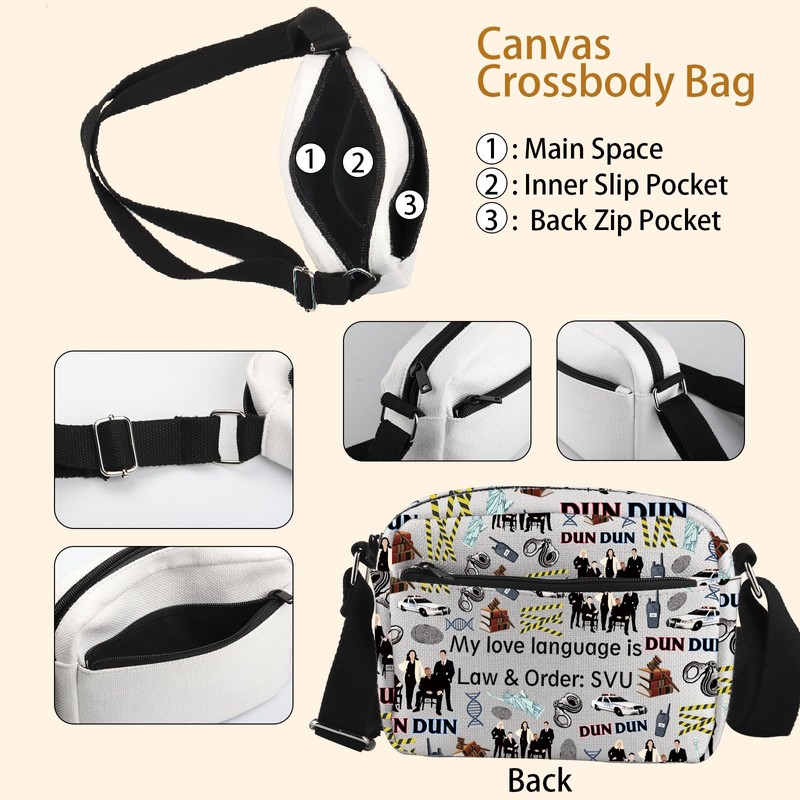 JTOUK TV Show Inspired Gift My Love Language Is Law & Order: SVU Zipper Canvas Crossbody Bag (Love Language HKB EU)