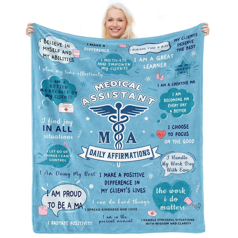 JTUOW Medical Assistant Gifts, Medical Assistant MA Week Gift, MA Students Throw Blanket 60"X 50" Inch, Medical Assistant Appreciation Gift for Women, Christmas Birthday Gift Ideas for Coworker