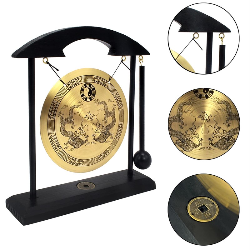 • Small gongs for decorating a home office, bedroom, living room, entry way, altar or mediation space, mantle, bookshelf, desk, or zen garden.