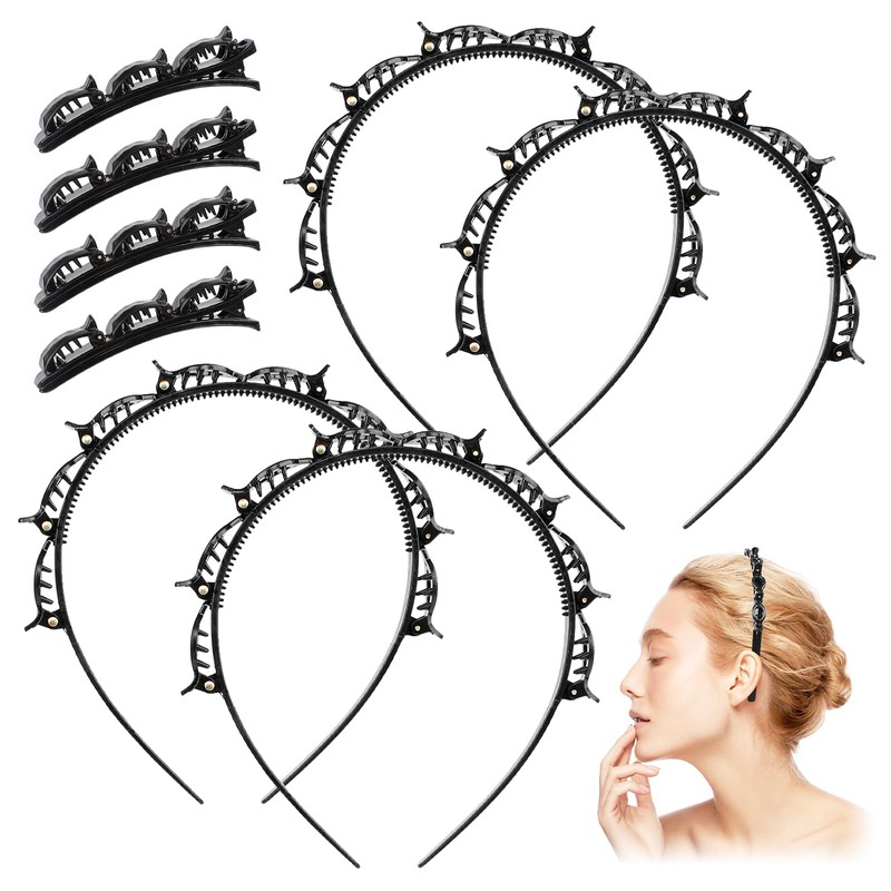 Jubaopen Pack of 8 Hairstyle Aid Headband with Clips Hair Pins Hairdressing Supplies Headband Hair Holder Hair Band with Clips Bangs Hairpin Twist Clip Headband for Outdoor Sports Yoga (Black)