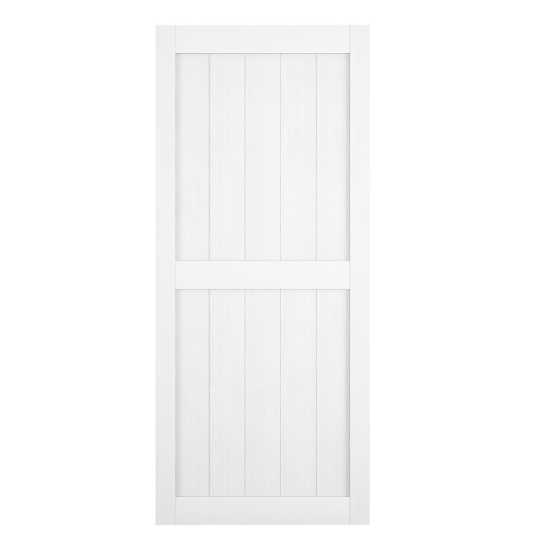 JUBEST 36"x84" White Sliding Barn Door, MDF Wood with Water-Proof & Scratch-Resistant PVC Surface, Modern H-Frame Door Slab, NOT Included Hardware Kit
