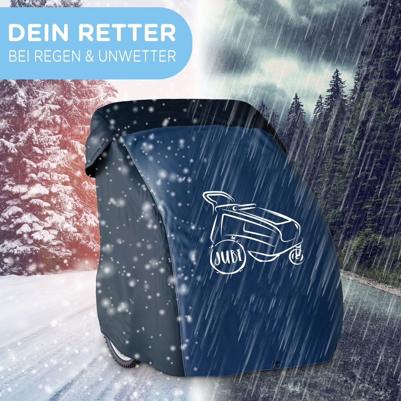 - 100% waterproof and durable - The Jubi folding garage for bicycle trailers is made of robust, outdoor material. The inside is additionally coated and all seams are double stitched and sealed for the highest demands.