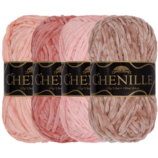 JubileeeYarn - Hilo de felpilla - Peso peinado - 100 g/madeja - Tonos de rosa - 4 madejas