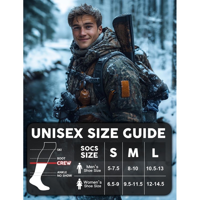 - 【Ultimate Warmth & Thickness】: Designed for winter adventures, these socks provide optimal insulation, ensuring your feet stay warm and cozy during outdoor activities like hunting, hiking, or working in chilly conditions. The perfect companion for cold-weather excursions.