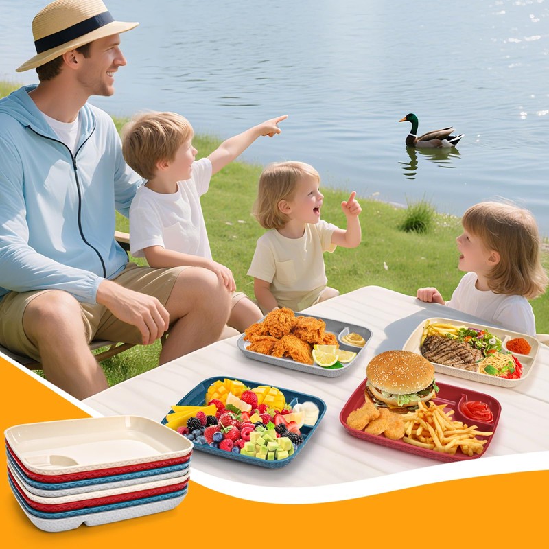 - Versatile: Set of 8 rectangular serving plates for party in 4 colors, including red, blue, beige and grey, 2pc each color, designed to neatly organize and present complete meals or diverse party snacks, stylish colors elevate your food presentation at home, parties, buffets, or catering events.