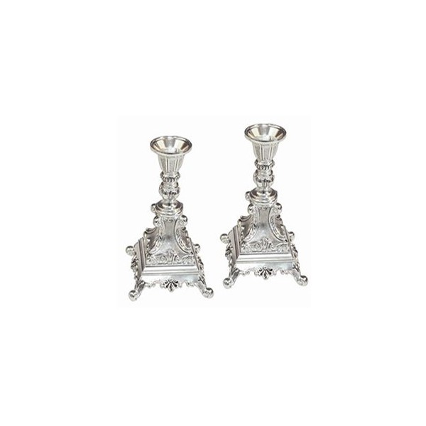 This classy pair of candlesticks brings a special sparkle to the table! The square base and round cups with a ridged edge adds a unique twist. They will add grace and splendor to any Shabbos or yom tov table.
