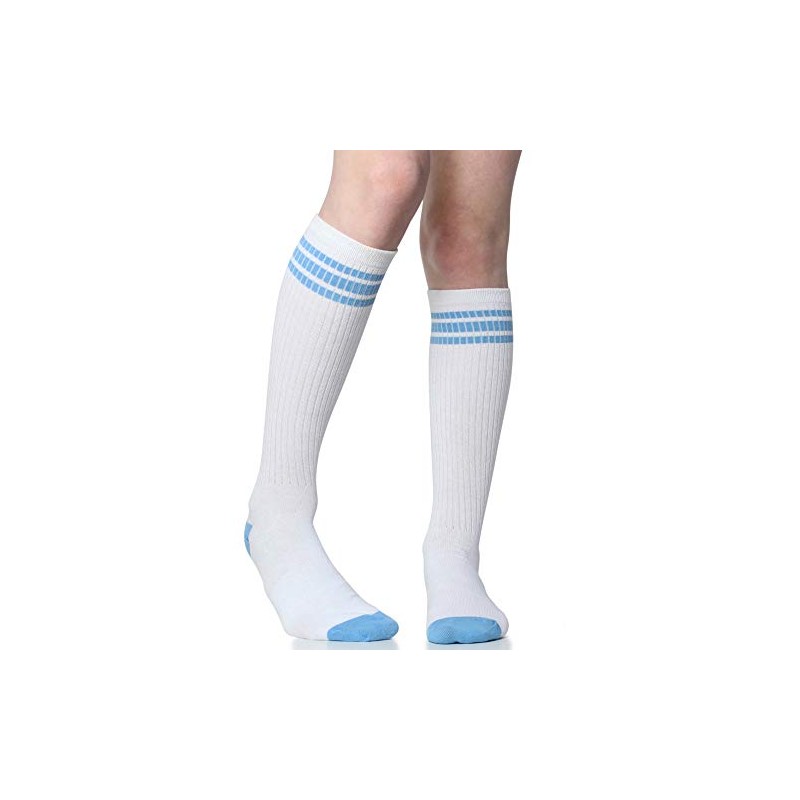 juDanzy Tall Knee High Sport Socks with Stripes and Anti-Slip Grips for Kids Toddlers and Children (2-4 White/Columbia)