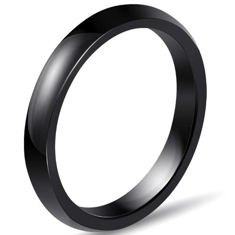 JUDE 3mm White Ceramic Plain Simple Classical Wedding Band Stackable Ring (Black, U)