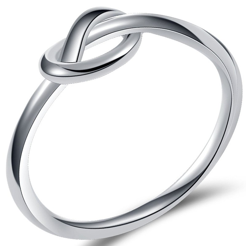 JUDE Durable Stainless Steel Silver Black Love Knot Ring Promise Celtic (Silver, G)
