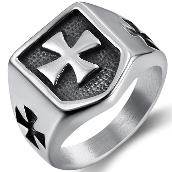 Jude Jewelers Retro Vintage Stainless Steel Crusade Cross Signet Style Cocktail Party Biker Ring (Silver, 13)