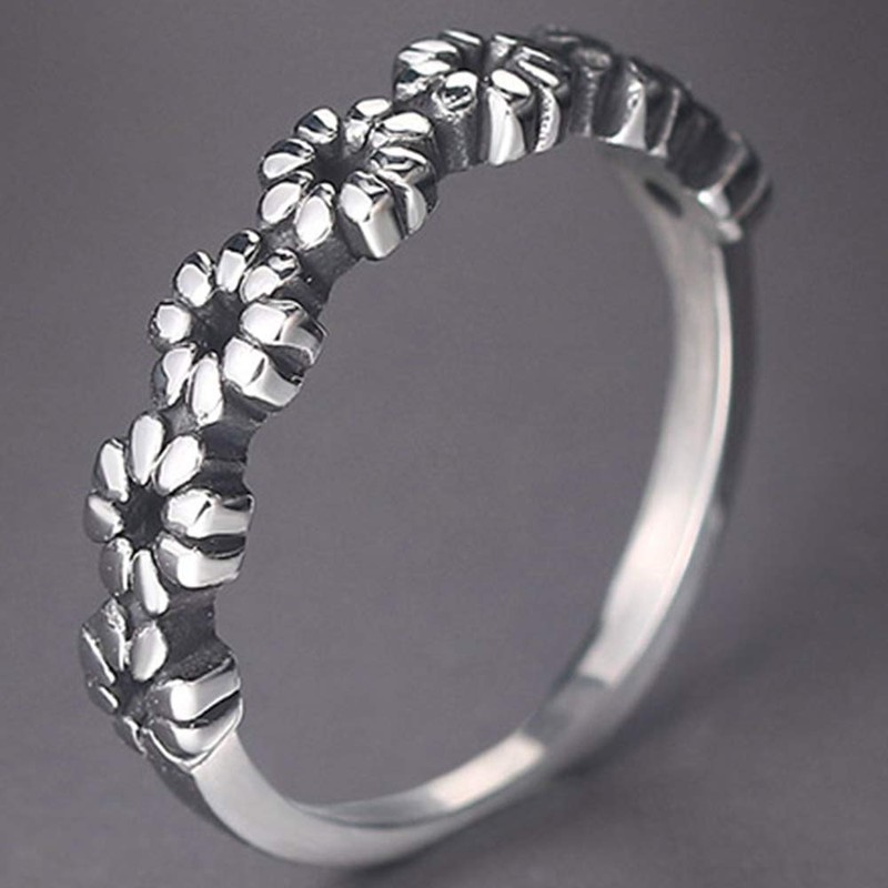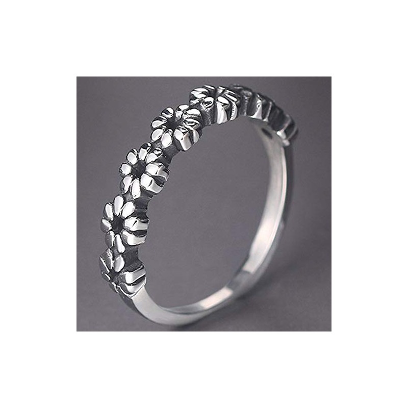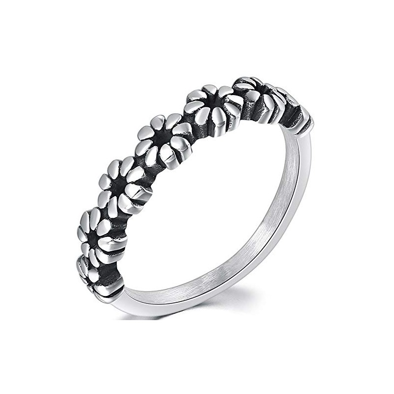 Jude Jewelers Retro Vintage Stainless Steel Stackable Flower Style Wedding Band Ring (Silver, 7)