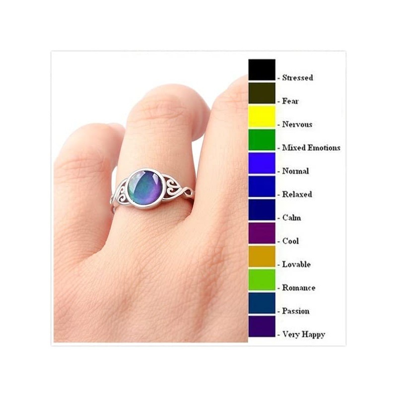 Jude Jewelers Round Shape Simulated Moon Stone Color Changing Mood Ring (Silver, 10)
