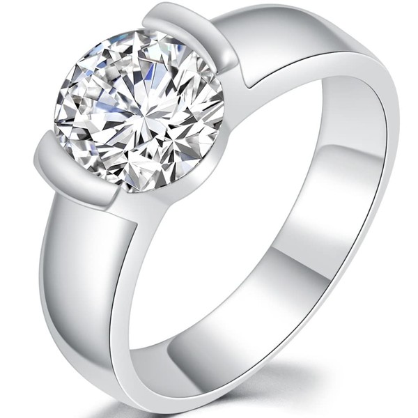 Jude Jewelers Stainless Steel Never Rust Wedding Engagement Proposal Solitaire Ring (Silver, 13)