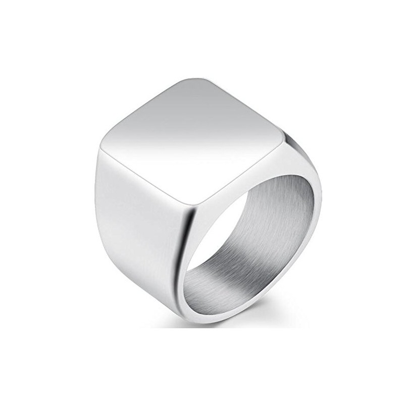 JUDE Stainless Steel Signet Ring Black Silver Classical Simple Plain Cocktail Husband Father Valentine (Silver, U)