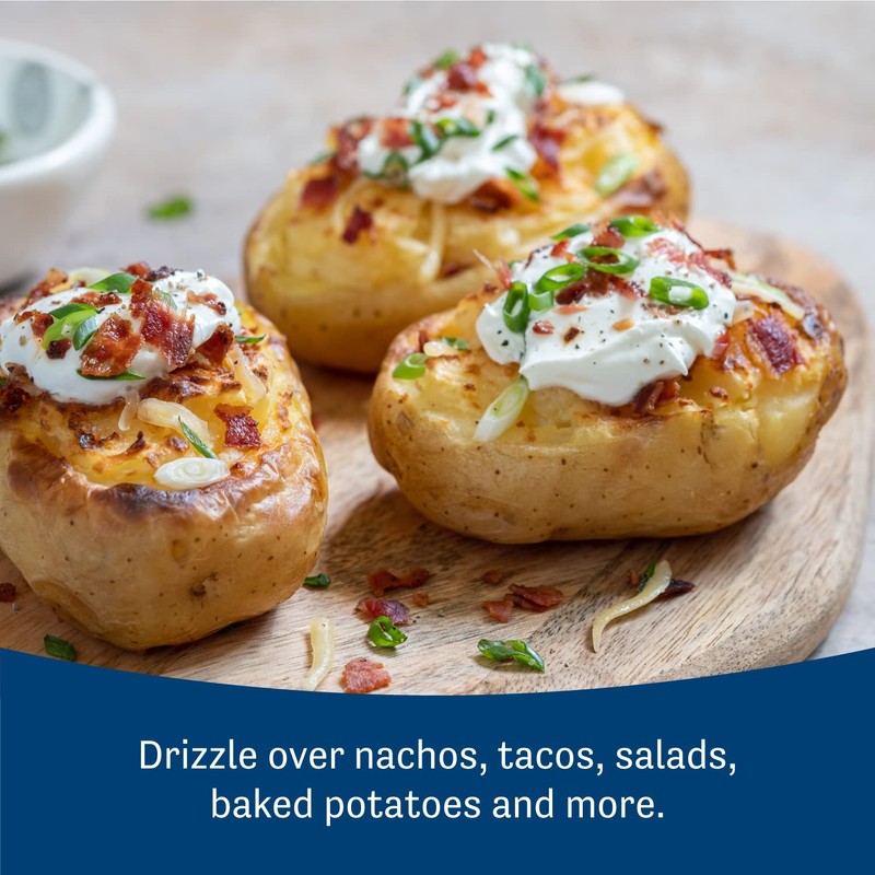 • Great for making chocolate sour cream cakes, muffins, and biscuits. Drizzle over nachos, hot fries, salads, baked potatoes, and more.