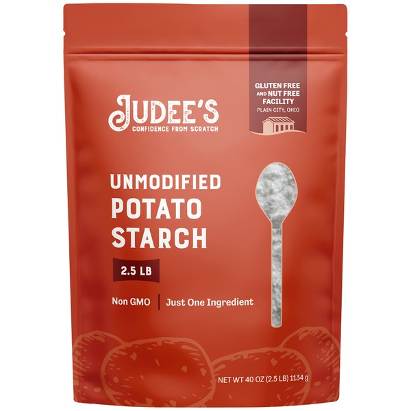 Judee’s Unmodified Potato Starch 2.5 lb - Just One Ingredient - Great for Breading, Thickening, Cooking, and Baking - 100% Non-GMO, Gluten-Free, and Nut-Free - Resistant to High Temperatures